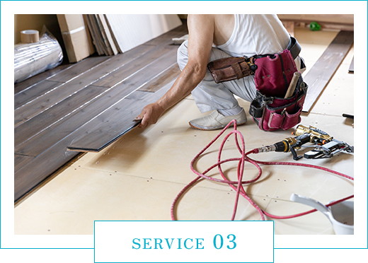 構造用合板の上から、床の仕上げを行います。行うのは主に、フローリング・クッションフロア・フロアタイルです。